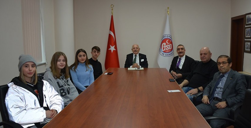 Milli Eğitim Müdürlüğü ve TÜMKİAD tarafından ortaklaşa yürütülen 'Değerlerimizle Varız' Projesi kapsamında Gümüşhane İbni-Sina Mesleki ve Teknik Anadolu Lisesinde eğitim gören 11.Sınıf öğrencileri Burak Zengin, Havva Mutaf, Sudenaz Tunç ve Tuğba Uçak'ı Öğretmenleri Nusret Bulut önderliğinde odamızda misafir ederek, sorularına cevaplayan GTSO Başkanımız İsmail Akçay, öğrencilere odamızın hizmetleri hakkında bilgi vererek, tecrübelerini paylaştı.