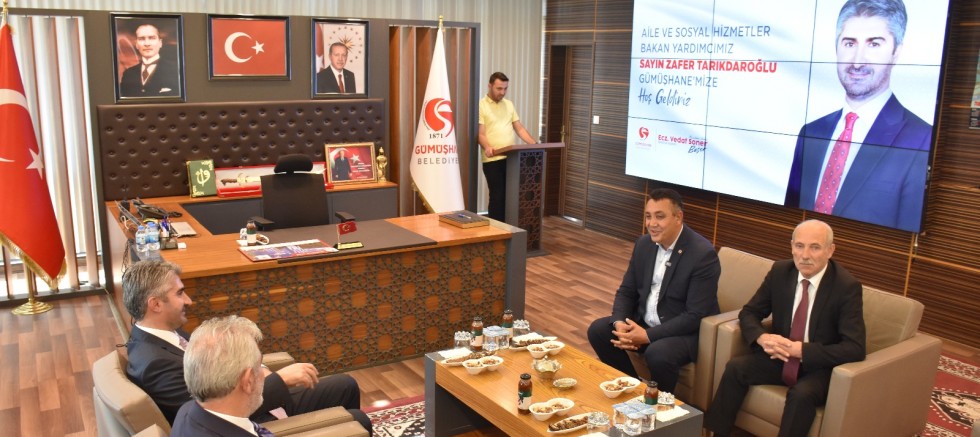 Bakan Yardımcısı Tarıkdaroğlu, son olarak Gümüşhane Belediye Başkanı Vedat Soner Başer’i makamında ziyaret ederek şehirdeki sosyal hizmet yatırımları üzerine görüş alışverişinde bulundu.
