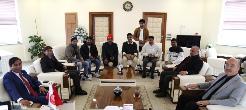 Üniversitemiz Rektörlük makamında gerçekleşen ziyarete Uluslararası Öğrenci Koordinatörü Dr. Öğr. Üyesi Mustafa Ayyıldız ve Üniversitemizde eğitim gören Bangladeşli öğrenciler katıldı.