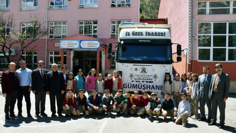 Gümüşhane'deki okullar ÇEDES projesi ile Adıyaman'ın Tut ilçesindeki kardeş okulları ile irtibata geçerek belirlenen ihtiyaçlardan acil olanları hazırladı. Hazırlanan malzemelerden oluşan ilk tır geçtiğimiz Ramazan ayında gönderilirken ikinci TIR ise bugün Dumlupınar İlkokulu bahçesinden yola çıktı.