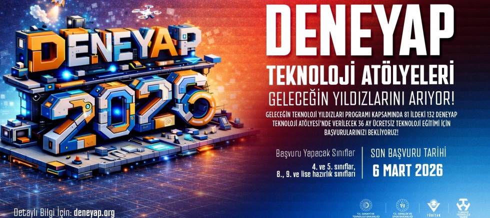 Türkiye’nin Milli Teknoloji Hamlesi vizyonuyla şekillenen ve T.C. Sanayi ve Teknoloji Bakanlığı, T.C. Gençlik ve Spor Bakanlığı, TÜBİTAK ve Türkiye Teknoloji Takımı Vakfı (T3 Vakfı) paydaşlığında yürütülen “DENEYAP Teknoloji Atölyeleri” kapsamında, teknolojiye tutkuyla bağlı, hayallerini üretime dönüştürmek isteyen gençler için 2026 Öğrenci Seçme Süreci başvuruları başladı.