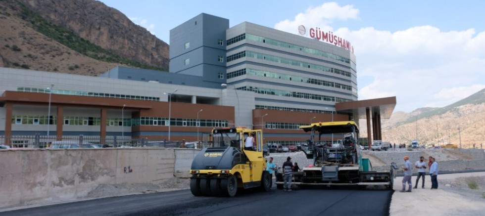 Gümüşhane'de yeni binasında hizmet vermeye başlayan ve yol sorunuyla sürekli gündeme gelen 200 yataklı yeni Gümüşhane Devlet Hastanesi'nin 1 buçuk kilometrelik bölümünde asfaltlama çalışmaları başladı. Vatandaşlar tarafından yolun bozuk olması ve sürekli tozlanma iddialarıyla sürekli tepkiye neden olan yolda başlatılan çalışmanın yarın itibariyle tamamlanması planlanıyor. Asfaltlama çalışmasıyla birlikte bölgenin çevre düzenlemesinin de yapılacağını belirten Gümüşhane Belediye Başkanı Ercan Çimen, 1 ay içerisinde çalışmaların tamamlanmasının planlandığını ve vatandaşların konforlu bir şekilde hizmet alabilecekleri bir alan ortaya çıkarmak için çalışmaların süreceğini söyledi.