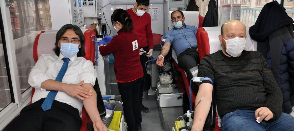 “İyilik Kanımızda Var” sloganıyla düzenlenen kan bağışı kampanyasına İl Milli Eğitim Müdürü Seydi Doğan, Müdür Yardımcıları Mesut Olgun ve Musa Uncu, Şube Müdürü Selahattin Yüzgeç, okul müdürleri ve İl Milli Eğitim Müdürlüğü personelleri 15 Temmuz Şehitler İmam Hatip Ortaokulu bahçesinde Kızılay kan verme aracında bir araya gelerek kan bağışında bulundu.