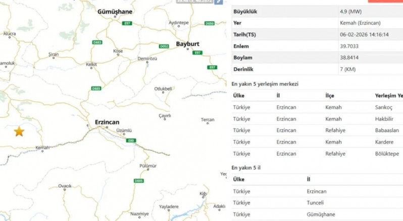 Asrın Felaketi olarak nitelendirilen 6 Şubat depremlerinin yıldönümünde Erzincan’ın Kemah ilçesinde 4,9 büyüklüğünde deprem gerçekleşti. Saat 14.16’da meydana gelen deprem yerin 7 kilometre altında gerçekleşirken yüzeye yakın deprem Erzincan ve civarında şiddetli şekilde hissedildi.