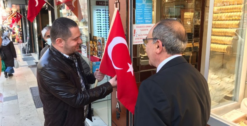 Esnafları ziyaret ederek eskimeye başlayan bayrakların yenileriyle değiştirmesine eşlik eden Gümüşhane Vali Yardımcısı Gürkan Karaman, ziyaret esnasında bayrak kullanımı ve muhafazası konusunda da işyeri ve işletme sahiplerine hatırlatmalarda bulundu.