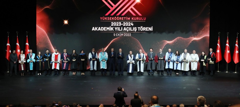 YÖK Başkanı Prof. Dr. Erol Özvar’ın konuşmasının ardından bir konuşma gerçekleştiren Cumhurbaşkanı Recep Tayyip Erdoğan; yeni akademik yılın Ülkemiz, milletimiz ve öğrenciler için hayırlı olmasını diledi. Yükseköğretim Kurulunun 2023 Üstün Başarı Ödülleri’nin takdim edileceği bilim insanlarını ve üniversiteleri tebrik eden Cumhurbaşkanı Erdoğan, üniversiteler ve akademisyenlerle gurur duyduklarını, kendilerinden nice başarılar beklediklerini söyledi. Türkiye’nin 7 milyonun üzerindeki öğrenci sayısıyla Avrupa’da yükseköğretim alanında ilk sıralarda yer aldığını ifade eden Cumhurbaşkanı Erdoğan; “Tam 198 ülkeden gelen 340 bine yakın öğrenciyle dünyada en fazla uluslararası öğrencinin bulunduğu ilk 10 devlet arasındayız. Üniversitelerimizin bir daha asla yasakla, baskıyla, kavgayla ya da ideolojik dayatmalarla anılmasına müsaade etmeyeceğiz” ifadelerini kullandı.