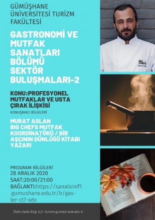 Etkinlik serisinin ikincisinde BigChefs Restaurant grubunda Mutfak Koordinatörü olarak görev yapan Murat Aslan konuk edildi. 28 Aralık 2020 Pazartesi günü düzenlenen etkinliğe, Turizm Fakültesi öğretim elemanları ve öğrencilerinin yanı sıra Şiran MYO Aşçılık programı öğrencileri de katılım sağladı.