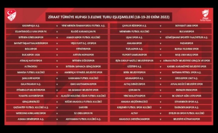Ziraat Türkiye Kupası 3. Eleme Turu kura çekimi TFF Riva Hasan Doğan Milli Takımlar Kamp ve Eğitim Tesisleri Orhan Saka Konferans Salonu'nda yapıldı.