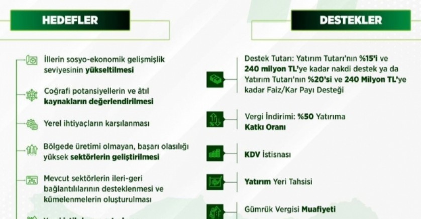 Bölgeler arası gelişmişlik farklarının azaltılmasını hedefleyen proje ile İllerin sosyo-ekonomik gelişmişlik seviyesinin yükseltilmesi, Yerel coğrafi potansiyelin ve atıl kaynakların değerlendirilmesi, Yerel ihtiyaçlara yönelik üretimin desteklenmesi, Bölgede üretimi olmayan, başarı potansiyeli yüksek sektörlerin geliştirilmesi, Yerel istihdamın artırılması, Mevcut sektörlerin ileri-geri bağlantılarla desteklenmesi ve kümelenme yapılarının oluşturulması amaçlanıyor.