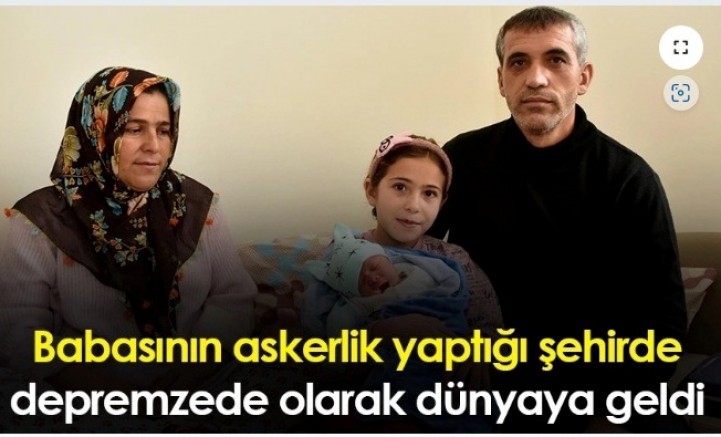 Kahramanmaraş’ta 6 Şubat günü depreme yakalanan Kurt ailesinin 5. çocukları, babasının yıllar önce askerliğini yaptığı, şimdi de depremzede olarak geldikleri Gümüşhane’de dünyaya geldi.