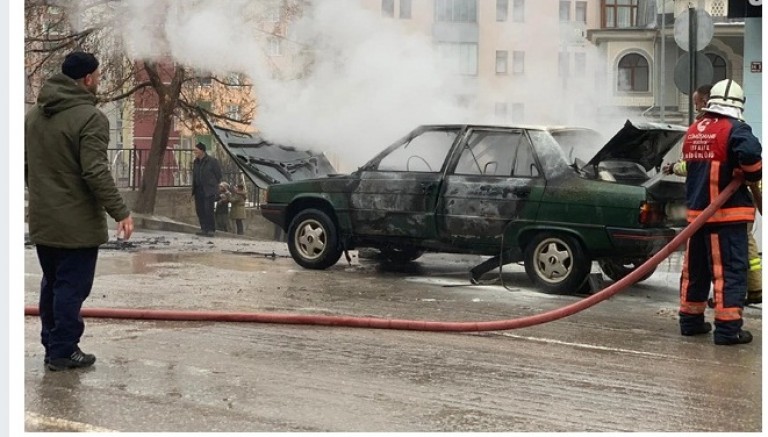 N.K., gazetecilere, otomobilinin evinin önünde park halindeyken yandığını belirterek, "Komşum arayıp otomobilin yandığını haber verdi. Otomobilin yanına gelerek kapılarını açtım, her yerini duman sardı.