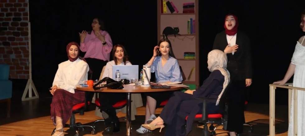 Gümüşhane Üniversitesi Dr. Mustafa Çalık Kongre ve Kültür Merkezi’nde sahneye çıkan Gümüşhane Tiyatro Topluluğu, “Kadın Kafası A.Ş.” isimli oyunlarıyla izleyicileri hem güldürdü hem de düşündürdü. Ancak gecenin en dikkat çekici detayı, oyunun işitme engelli bireyler için eş zamanlı olarak işaret diline çevrilmesi oldu.