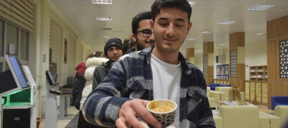 Ömer Hamza Ayhan da kütüphanede ders çalıştıklarını belirterek, 'Rektör hocamız da bize herle ikram etti. Bu soğukta içimizi ısıttı.' diye konuştu.