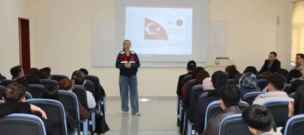 Gümüşhane İl Jandarma Komutanlığı, üniversite öğrencilerinin suçtan korunma bilincini artırmak ve güvenlik kültürünü yaygınlaştırmak amacıyla Şiran Dursun Keleş Sağlık Hizmetleri Meslek Yüksekokulu’nda (MYO) geniş kapsamlı bir eğitim programı düzenledi. Siber suçlardan KADES’e, narkotik mücadeleden trafik güvenliğine kadar pek çok hayati konu uzman ekiplerce öğrencilere aktarıldı.