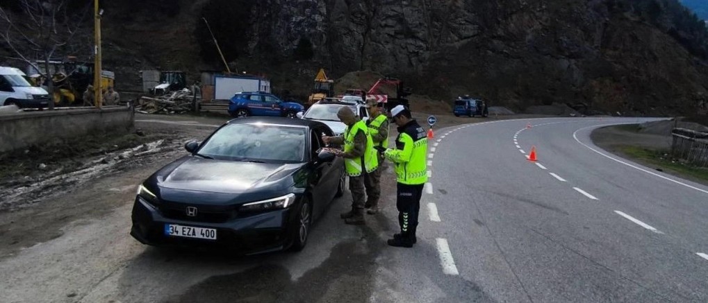 Ramazan Bayramı tatili dolayısıyla yol kontrol ve denetimlerini sıkılaştıran Gümüşhane İl Jandarma Komutanlığı Trafik Timleri, uygulama noktalarında durdurulan sürücülere ceza yerine şeker ve kolonya ikram edilerek bayramları kutlandı. Gümüşhane genelinde huzurlu ve güvenli bir bayram trafiği sağlamak amacıyla harekete geçen Trafik Jandarması ekipleri, stratejik noktalarda denetim gerçekleştirdi. Denetimlerin odağında sadece kurallar değil, aynı zamanda bayramın getirdiği hoşgörü ve nezaket vardı.