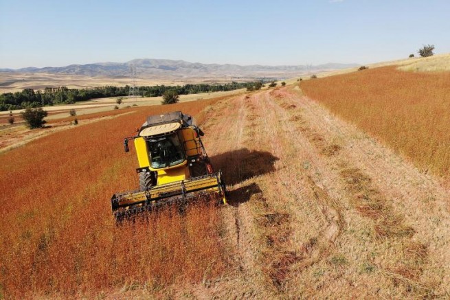 Kelkit ilçesine bağlı Öbektaş Beldesi ve çevresinde sözleşmeli tarımla ekimi yapılan yaklaşık bin dönümlük alanda biçerdöverle hasat başlarken bu yılki rekolte çiftçilerin yüzünü güldürdü.