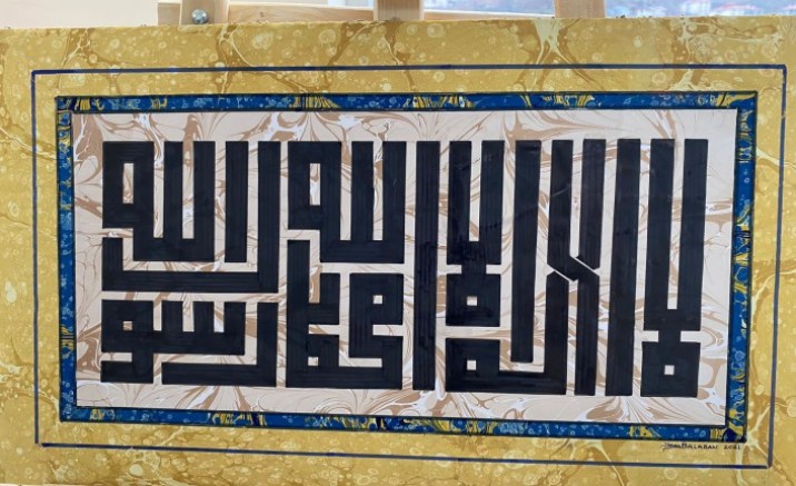 Okulun resim öğretmeni ve ebru sanatçısı Yavuz Balaban ve öğrencilerinin çalışmalarından oluşan toplam 25 eser okulun girişindeki salonda sergileniyor.