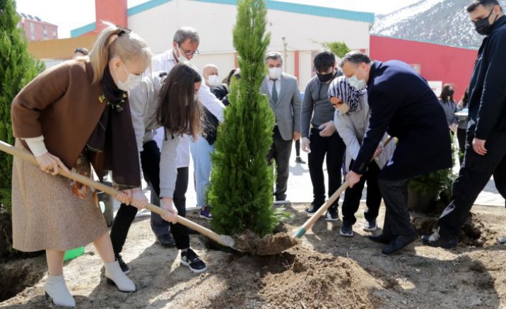 İl Milli Eğitim Müdürü Miraç Sünnetci, Okul Müdürü Fatih Demirel, öğretmen ve öğrencilerin katıldığı etkinlikte ağaçları toprakla buluşturup can suyunu veren Vali Taşbilek, ağaçları öğrencilere emanet etti.