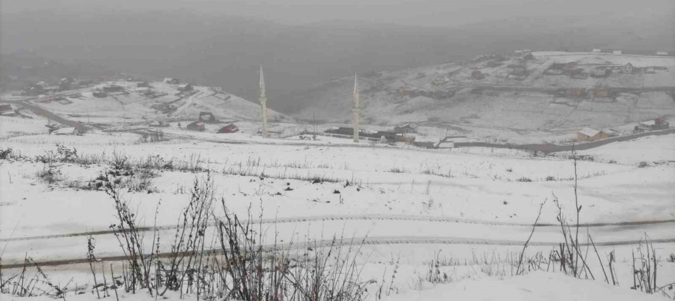 Gümüşhane’nin Kürtün ilçesindeki Kadırga Yaylası’nda dün akşam etkili olan kar yağışı, bölgeyi kısa sürede beyaza bürüdü.