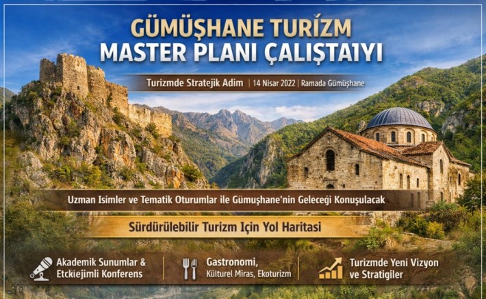 T.C. Gümüşhane Valiliği öncülüğünde düzenlenecek olan “Gümüşhane Turizm Master Planı Çalıştayı”, 14 Nisan’da turizm dünyasının önemli isimlerini kentte bir araya getirecek. Doğal güzellikleri, tarihi dokusu ve kültürel zenginlikleriyle öne çıkan Gümüşhane’de gerçekleştirilecek çalıştayın, şehrin turizm vizyonuna yön verecek önemli bir adım olması bekleniyor.