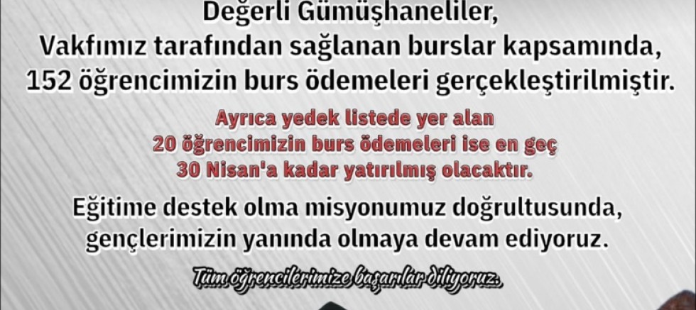Güner, burs komisyonu tarafından titizlikle yürütülen değerlendirme süreci sonucunda belirlenen ve vakıf internet sitesinde duyurulan 152 öğrencinin burs ödemelerinin bayram öncesinde eksiksiz olarak gerçekleştirildiğini açıkladı.