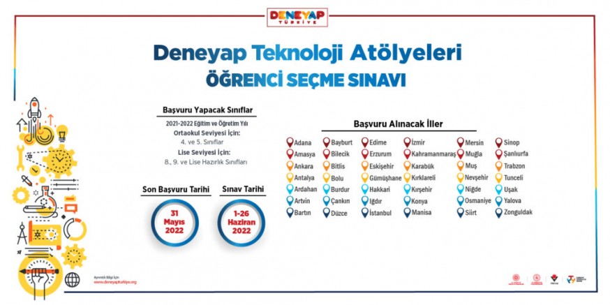 anayi ve Teknoloji Bakanlığı, Gençlik ve Spor Bakanlığı, TÜBİTAK ve Türkiye Teknoloji Takımı tarafından hayata geçirilen “Deneyap Türkiye” projesinin 4. fazı kapsamında 26 ilde daha Deneyap Teknoloji Atölyesi kurulacak. 2022’de ilk faz kapsamında açılan atölyeler dahil olmak üzere toplam 42 ilde öğrencilere teknoloji eğitimleri verilecek.