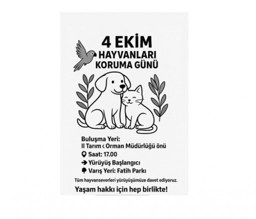 4 Ekim günü İl Tarım ve Orman Müdürlüğü önünden saat 17:00’da başlayacak olan yürüyüş Fatih Parkında sonlanacak. Gümüşhaneli hayvanseverler, kentteki duyarlı vatandaşları yürüyüşe katılarak etkinliğe destek vermeye davet etti.