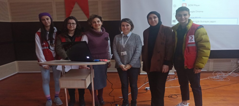 Proje kapsamında Kızılay Kan Bağışı Kazanım Personeli Derya Esen Yılmaz, fakültemiz öğrencilerine kan vermenin insan vücuduna faydaları ve kan bağışının önemi konulu bir seminer verdi. Projeyi gerçekleştiren öğrenciler, projelerinin amaçlarını şu şekilde ifade ettiler: “Biz yıllardır gönüllü Kızılay kan bağışçısıyız. Bu projeyi Dr. Öğr. Üyesi Neva Doğan hocamızın verdiği Sosyal Sorumluluk ve Proje dersi kapsamında hazırladık. Bu konuyu seçmemizdeki amaç ise üniversite öğrencilerine kan bağışı hakkında bilgilendirmeler yaparak, öncelikle Kızılay ve kan vermenin önemine dikkat çekmek ve kan bağışına teşvik etmektir.”