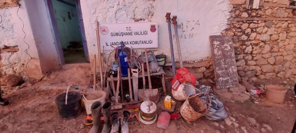 İl Jandarma Komutanlığı KOM Ş.Md.lüğü ve İl Merkez Jandarma Komutanlığı ekiplerince olay yerine gidilmiştir. Olay yerinde İ.Y, H.Y,S.Y, K.Z, A.Y, A.K ve M.İ isimli şahıslar yakalanmıştır. Yapılan incelemede 12x4 metre uzunluğunda Define aramak için tünel kazdıkları tespit edilmiştir. Şahısların kazıda kullanmak için yanlarında bulunan 1 adet 20 metre uzunluğunda halat, 1 adet 20 metre uzunluğunda seyyar elektrik kablosu ve çeşitli boy-ebatlarda 37 adet ( kazma. kürek, halat ve inşaat malzemeleri) ele geçirilmiştir.