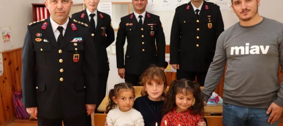 Ziyaret kapsamında Jandarma personeli, beraberlerinde getirdikleri pastayı Öğretmen Metin Taşdemir ve öğrencileriyle birlikte kesti.