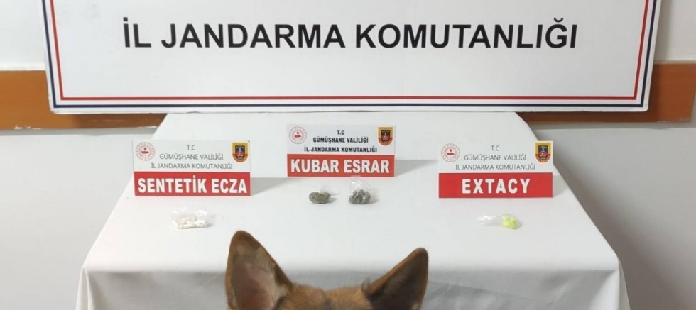 Alınan bilgiye göre, İl Jandarma Komutanlığı Kaçakçılık ve Organize Suçlarla Mücadele Şube Müdürlüğü (KOM) ekipleri yaptıkları istihbarat çalışmalarında H.O. isimli şahsın araçla Rize’den Gümüşhane’ye uyuşturucu ve uyarıcı madde getireceği bilgisini alınca çalışma başlattı. Merkez İlçe Jandarma Komutanlığı ekipleri ve uyuşturucu madde arama köpeği Delil’in de katılımıyla KOM ekipleri aracı durdurarak araçta bulunan U.O., H.O. U.A ve M.O. isimli şüpheli şahısların üzerlerinde ve araç içerisinde arama yaptı. Arama sonucu ekipler 5 gram kubar esrar, 9 adet sentetik ecza ve 4 adet extacy hap ele geçirdi.