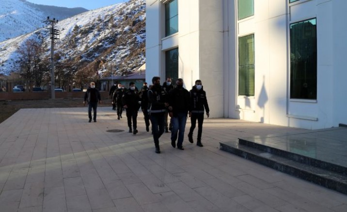 Operasyonun ardından Gümüşhane’de gözaltına alınan 12 şüpheli İl Emniyet Müdürlüğü’nün Bağlarbaşı Mahallesinde bulunan Şehit Olgun Gülay Ek Hizmet binasındaki işlemlerinin tamamlanmasının ardından Torul Adliyesine sevk edildi.