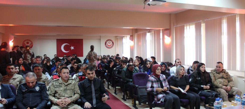İçişleri Bakanlığımızın öncülüğünde başlatılan Gümüşhane İl Jandarma Komutanlığı, Gümüşhane Aile ve Sosyal Hizmetler İl Müdürlüğü ve Üniversitemiz İrfan Can Köse Meslek Yüksekokulu iş birliği ile düzenlenen eğitime öğrencilerimiz yoğun ilgi gösterdi. Programa Köse İlçe Jandarma Komutanı Jandarma Teğmen Tugay Yavuz, İlçe Emniyet Amiri Komiser Baki Yılmaz, Köse İlçe Devlet Hastanesi Müdürü Adem Yağlıdere ve Yüksekokul akademik personelimiz ile öğrencilerimiz katılım sağladı.