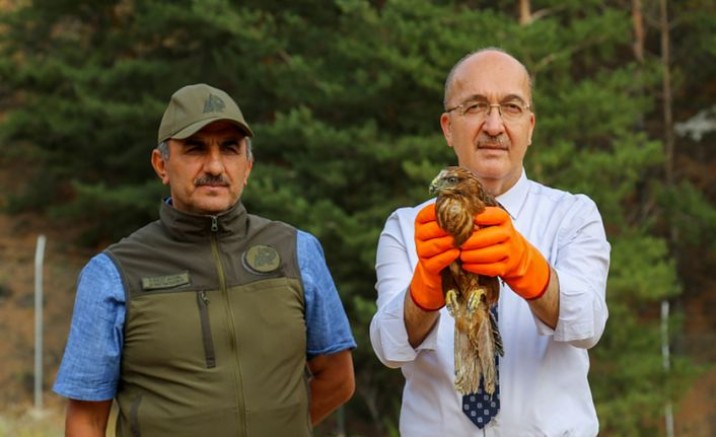 Gümüşhane Merkez ilçe sınırları içerisinde vatandaşlar tarafından bulunarak Doğa Koruma ve Milli Parklar (DKMP) Şube Müdürlüğü’ne getirilen ‘Kızıl Şahin’ tedavilerinin tamamlanmasının ardından, Rektör Prof. Dr. Halil İbrahim Zeybek, DKMP Şube Müdürü İlbeyi Aydın ve Rektör Yardımcısı Prof. Dr. Günay Çakır’ın katılımıyla doğaya salındı.