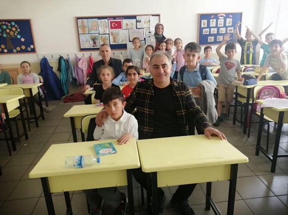 3/E sınıfı öğrencileri ile önceden planlanan spor ve futbol üzerine söyleşi için sınıf öğretmeni Sevim Küçüköner tarafından okula davet edilen Teknik Direktör Sezgin Köprülü, okul müdürü Veli Ağaç’ın da katılımlarıyla minik öğrenciler ile bir araya geldi.
