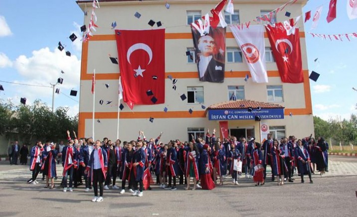 İrfan Can Köse Meslek Yüksekokulu Kampüs alanında büyük bir coşkuyla gerçekleştirilen mezuniyet töreni öğrencilerin protokolü selamlayarak gerçekleştirdiği kortej yürüyüşünün ardından aziz şehitlerimiz ve kahraman gazilerimizin anısına saygı duruşunda bulunulması ve İstiklal Marşının okunmasıyla başladı.