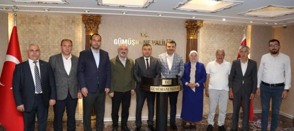 AK Parti Gümüşhane Milletvekili Celalettin Köse ve İl Başkanı Mehmet Emin Erdoğdu, beraberlerinde İl Kadın Kolları Başkanı Münire Şeyhoğlu ve ilçe başkanları ile birlikte, Cumhurbaşkanlığının 2023/376 sayılı Kararnamesi ile Ankara Elmadağ İlçe Kaymakamlığından, Gümüşhane Valiliğine atanan Alper Tanrısever’e hayırlı olsun ziyaretinde bulundu.