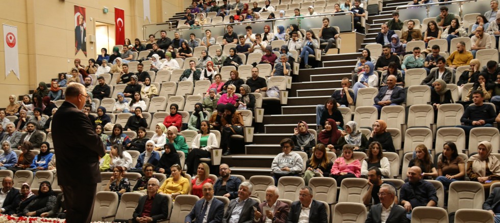 Prof. Dr. İsmail Hakkı Aydın Üniversitemizde bulunmaktan büyük mutluluk duyduğunu ifade ederek teşekkürlerini dile getirdi. Aydın gerçekleştirdiği sunumunda şunlara yer verdi: “Hayatım boyunca bilime kıymet verdim. İnsanı insan yapan bazı değerler vardır. Dünyada ilk kadın hekim Milattan önce 300 yıllarında antik Yunan uygarlığında yaşayan Agnodice’dir. Özellikle de o yıllarda kadın hekimlerinin yasaklandığı bir devirde kılık değiştirerek erkek kılığına giriyor tıp okuyor, hekimlik yapıyor. Bilim tarihine baktığımız zaman bilim insanları huzur bulmamışlardır. Buna rağmen huzur bulmamak bizim huzurumuzdur. Bilim insanlarının huzuru huzursuzluktur. Beynimiz hafızamızın, bilgilerimizin ve tecrübelerimizin depolandığı ve muhafaza edildiği, kaderimizin ve olasılıkla ruhumuzun da saklandığı değerli bir mücevherdir. Eğer beyninizi dinlendirirseniz beyniniz yorulur. Sakın beyninizi dinlendirmeyiz. Bilgi depolamaktan ziyade, evrenin refahına katkı sunmak için bilgi üretmek ve sorunlara çözüm bulmakla mükellef sonsuz kapasiteye sahip bir bilgisayar niteliği taşıyor. Ön yargılı olmayacaksınız. Kim ben başaracağım derse başarırsınız. Bana bugün yeni baştan Üniversite okuyacaksınız derlerse yine okurum. Berkeley’deki ilk senesinde Dantzig bir gün hocasının dersine çok geç gelmiş ve tahtada yazılı iki problemi ödev zannederek defterine geçirip eve götürmüş. George Bernard Dantzig matematiğin 150 yıldır çözülemeyen sorusunu çözmüştür. Hocası da ona ben o soruyu tarihte çözülemeyen sorular diye yazdım demiş. Dünyada büyük buluşlar beyin yoruldukça ortaya çıkmıştır. Bilim tarihinde en büyük buluşlar çok az imkanlarla bulunmuştur. Bilim dinamiktir ve intikam alır. Milattan önce 600’lü yıllarda iki yılda bilim iki katına çıkıyordu. 1900’lü yıllarda 200 yılda bilim iki katına çıkıyor. Günümüzde ise bilim 72 saatte iki katına çıkıyor. Bilimde uzay gibidir. Allah’ın ilk yarattığı şey matematiktir. Amel suresi 49’uncu ayetinde ‘Biz her şeyi matematik üzerine ölçü üzerine yarattık’ eğer Allah bir şeyi yaratacaksa onu ölçü üzerine yaratacaksa matematik olması lazımdır. Bilim ve ilim farklılık gösterir. Bilim nasılın peşindedir. Ama ilim neden ve niçinin peşindedir. Şimdi nasıl yaratıldığımız bilimin konusu neden yaratıldığımız ise ilimin konusudur. Matematikte de şöyle bir kural vardır. Matematik doğruyu ispat etmektense neyi neden doğru olduğunu ortaya koyar. Ön yargı, hipotez ne derseniz deyin argümanlar bu şekildedir.”