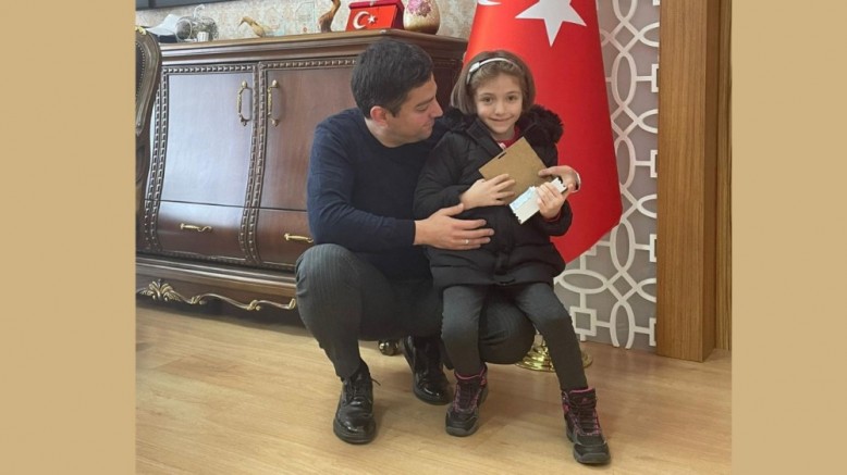 Gümüşhane’nin Şiran ilçesinde, depremzedelere destek olmak amacıyla kumbarasında biriktirdiği paraları AFAD'a bağışlamak üzere İlçe Kaymakamı Zahid Bahadır Semiz’e teslim eden ilkokul birinci sınıf öğrencisi Elif Eslem Kara, bu duyarlı davranışı ile yürekleri ısıttı.