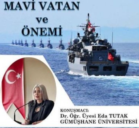 Bu kapsamda; Gümüşhane Üniversitesi İrfan Can Köse Meslek Yüksekokulu Müdür Yardımcımız ve Hukuk Bölüm Başkanımız Dr. Öğretim Üyesi Eda TUTAK tarafından Zonguldak Bülent Ecevit Üniversitesi Denizcilik Fakültesi'nde “Mavi Vatan ve Önemi” konulu bir video konferans gerçekleştirilecektir.