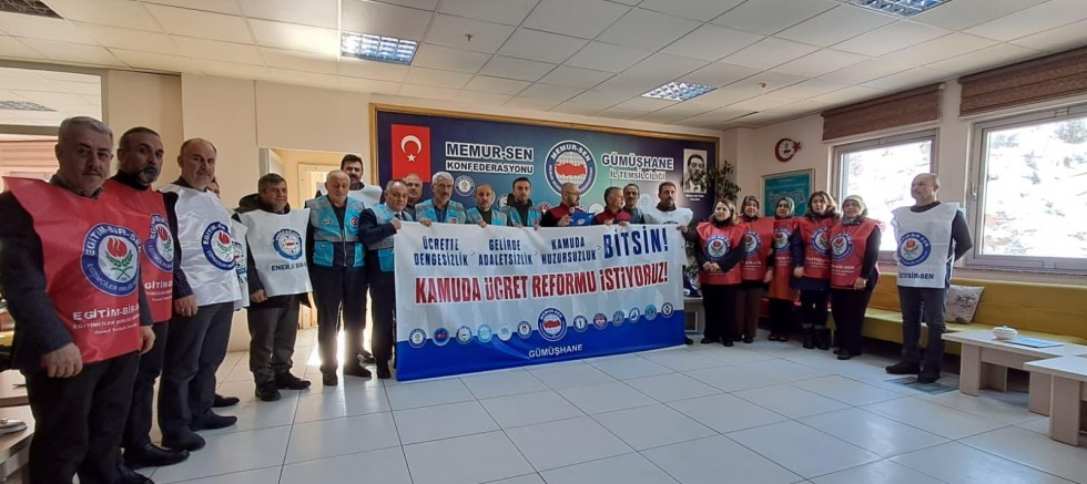 Memur Sendikaları Konfederasyonu (Memur-Sen) Gümüşhane İl Başkanlığı binasında bir araya gelen kamu çalışanları, mevcut ücret politikasını ve toplu sözleşme sistemini sert bir dille eleştirdi.