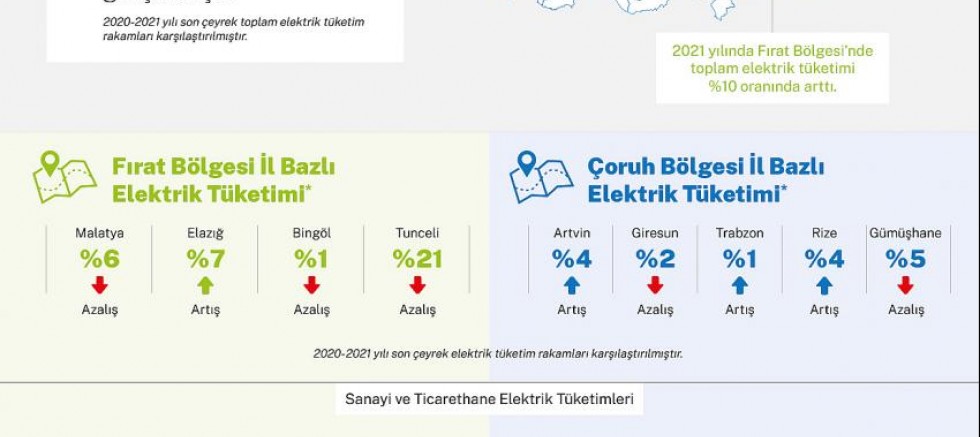 2021 yılının 12 aylık döneminde ise, Çoruh bölgesinin toplam elektrik tüketiminin 2020 yılına göre yaklaşık yüzde 1 oranında azaldığı, Fırat bölgesinin toplam elektrik tüketiminin ise yüzde 10 oranında arttığı kaydedildi.