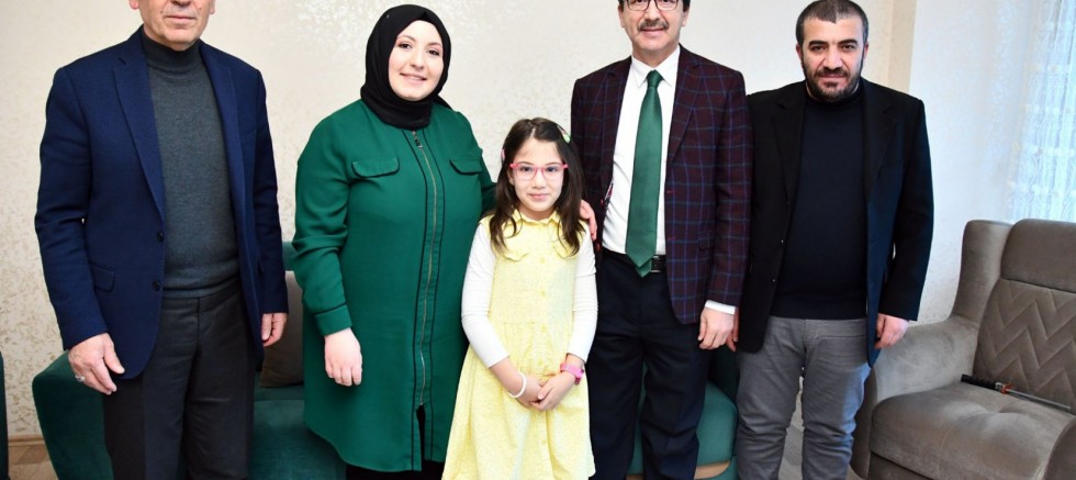Sohbetin ardından öğrenciye hediyesini veren Yalçın, ziyaretini tamamladı.