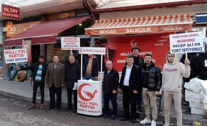 Kelkit’te sorun haline gelen yurt meselesi için imza kampanyası başlatan MYP GİK Üyesi Erzincan-Gümüşhane Bölge Sorumlusu Recai Demir, Gümüşhane İl Başkanı Abdulkadir Demir, Kelkit İlçe Başkanı Abdul Samet Demir ve diğer partililer bir basın açıklaması yaptı.