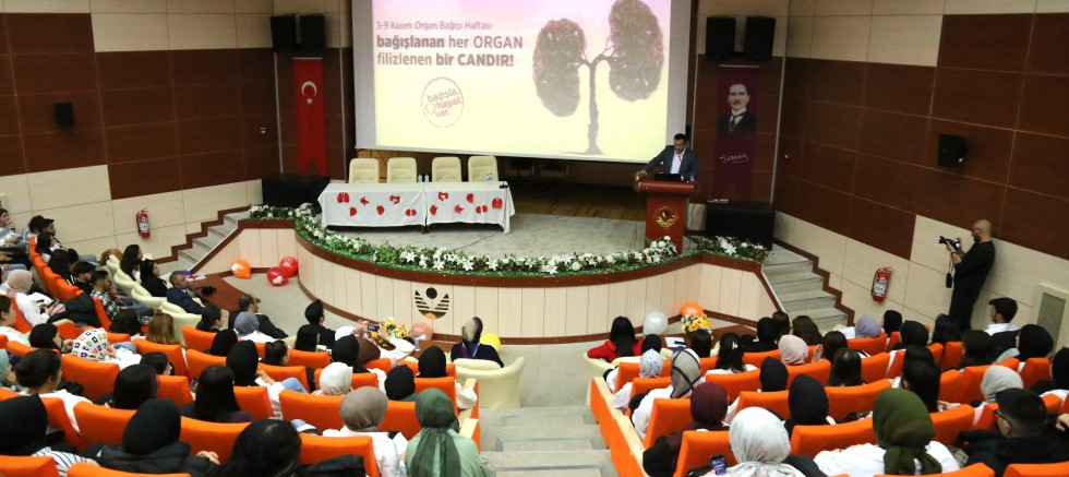 Üniversitemiz Mühendislik Fakültesi Prof. Dr. Ahmet Durmuş Konferans Salonu’nda düzenlen etkinliğin açılış konuşmasını Sağlık Hizmetleri Meslek Yüksekokulu Müdürü Prof. Dr. Mehmet Merdan yaptı. Prof. Dr. Merdan konuşmasında şu sözlere yer verdi: “Ülkemizde her yıl 3-9 Kasım tarihleri arasında ‘Organ ve Doku Bağışı Haftası’ olarak kutlanmaktadır. Tedavisi yalnızca organ ve doku nakli ile mümkün olan hastalıklar, bütün dünyada olduğu gibi ülkemizde de önemli sağlık sorunlarından biridir. Organ nakli vücutta görevini yapamayan bir organın yerine canlı bir vericiden veya ölüden alınan sağlam ve aynı görevi üslenecek bir organın nakledilmesi işlemidir. Kişinin hayatta iken serbest iradesi ile tıbben yaşamı sona erdikten sonra doku ve organlarının başka hastaların tedavisi için kullanılmasına izin vermesi ve bunu belgelendirmesi de organ bağışıdır. Organ bağışı önemli ve hayati bir konudur. Türkiye organ nakli faaliyetleri için yeterli donanıma, deneyimli nakil ekiplerine ve nakil merkezlerine sahiptir. Aşılması gereken en önemli sorun kadavra bağış oranındaki yetersizliktir. Unutmamak gerekir ki, her bağış yeni bir hayattır. Bu amaçla da etkinliğin düzenlenmesinde emeği geçen başta SHMYO Diyaliz programı Öğr. Gör. Gökcem Duru, Yaşlı Bakım programı Öğr. Gör Hatice Oğuzhan ve Gümüşhane İl Organ Nakil Koordinatörü Hemşire Neşe Öztürk olmak üzere herkese teşekkür ederim.”