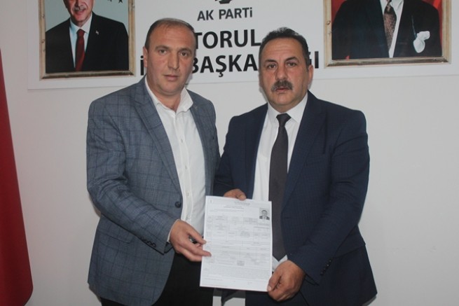 Osman Karabulut bugün Ak Parti Torul İlçe teşkilatında Torul Belediye Başkan Aday Adaylığını başvurusunu Ak Parti ilçe Başkanı Hüseyin Zengin”e teslim etti.
