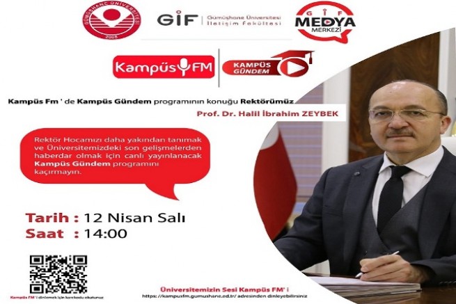 Üniversitemizdeki eğitim-öğretim faaliyetlerini değerlendirecek olan Rektörümüz program hakkında şu açıklamalarda bulundu: “Üniversitemiz son yıllarda hızlı bir ivme kazanarak başarılarına yenilerini eklemeye devam ediyor. Üniversitemizin yakaladığı bu başarıları, gelişimleri ve merak edilen konuları sizlerle paylaşmak üzere Üniversitemiz Kampüs FM’de yayımlanan Kampüs Gündem programına konuk olacağım. Keyifli bir sohbet olacağına inandığım programa sizleri de bekliyoruz.”