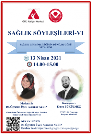 Her ay farklı konu ve konuklarıyla seri olarak düzenlenen “Sağlık Söyleşileri”nin 6’ncısı “Sağlık Girişimciliğinin Dünü, Bugünü ve Yarını” başlığı altında düzenlendi.Moderatörlüğünü Üniversitemiz Sağlık Bilimleri Fakültesi Hemşirelik Bölümü Dr. Öğr. Üyesi Aydanur Aydın’ın yaptığı programa Türkiye Teknoloji Geliştirme Vakfı (TTGV) HİT Programı Yöneticisi Evren Bükülmez çevrim içi olarak konuk oldu. Program, üniversitemiz resmi youtube kanalı üzerinden canlı olarak yayımlandı.