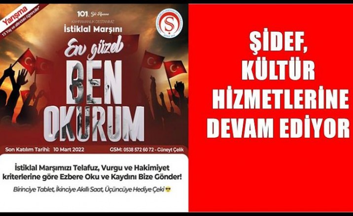 ŞİDEF İstiklal Marşının kabulünün 101. Yıl dönümünde çocukların İstiklal Marşı’nı daha iyi idrak edebilmeleri ve farkındalık oluşturma adına ödüllü “İstiklal Marşını en güzel ben okurum” yarışması düzenledi.