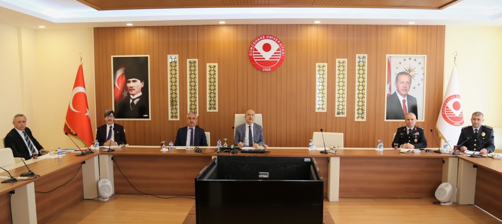 Üniversitemiz Senato Toplantı Salonunda düzenlenen toplantıya Gümüşhane İl Emniyet Müdür Vekili Mücahit Kaya, İl Jandarma Komutanı J. Kd. Alb İsmail Gökçek, İl Milli Eğitim Müdürü Metin Yalçın, Belediye Başkan Yardımcısı Kubilay Bozalan ve İl Nüfus ve Vatandaşlık Müdürü İsmail Türk katıldı.